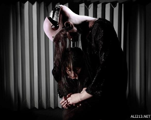 日本京都Hiroshi Ishiguro实验室设计的机器人Geminoid F,怀里抱着匿名模特。