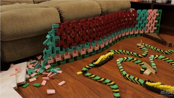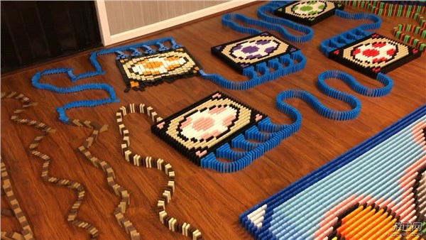 多米诺骨牌可以摆成很多形状,虽然耗费时间,但是推倒的那一刻让人神清气爽。近日,国外玩家TheDominoKing耗时5天,用16636块多米诺骨牌拼出《马里奥》耀西,随着轻轻的一下推动,画面效果相当震撼,一起来感受下。