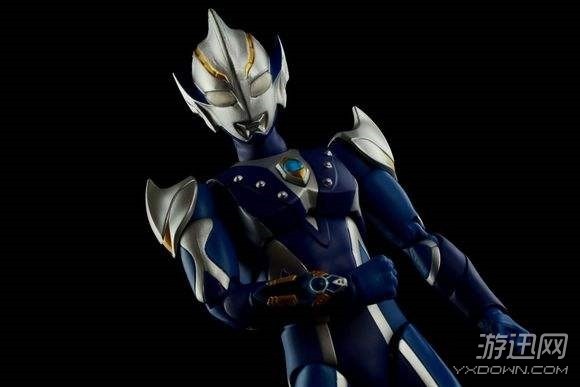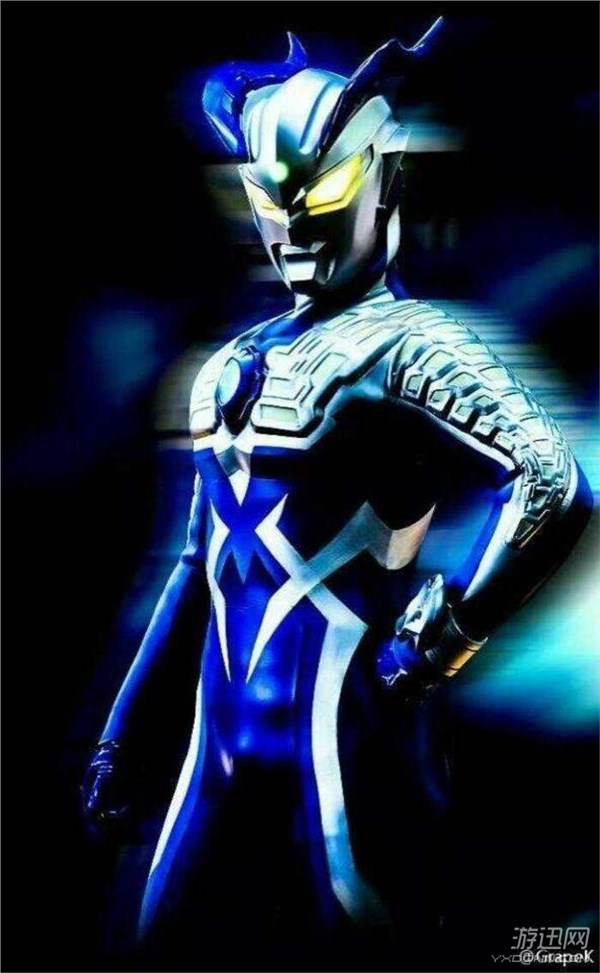 造型仿赛文奥特曼,主调红色,胸部和双肩拥有金银色防护甲。