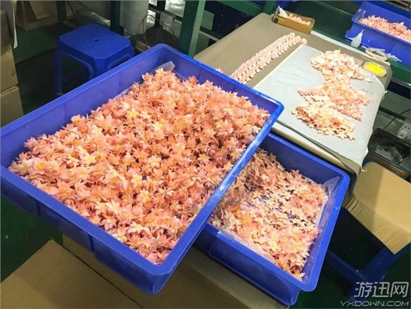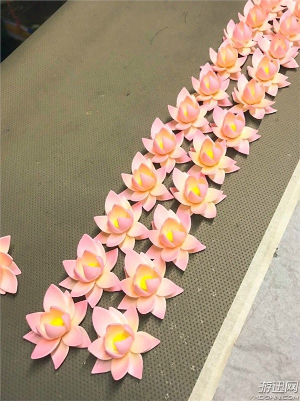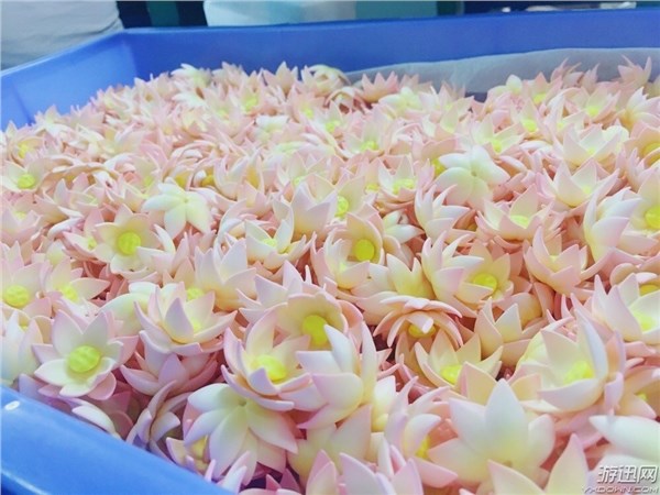 目前的赵灵儿手办正在全力投入量产,部分的配件已经完成了上色的工序,正在进行组装,可以看到大量的荷花零件,就是在手办底座上出现的那几朵,看起来粉粉嫩嫩的颜色,和之前官方公布的图片上的样子基本一致。
