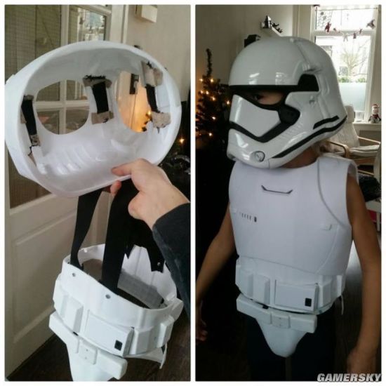 这位六岁的小星战谜如今有了一身帅气的cos行头,足够炫耀好几年了(直到长大到穿不下),带上头盔的小家有板有眼摆pose,摘下头盔又是一个欢乐小女孩。