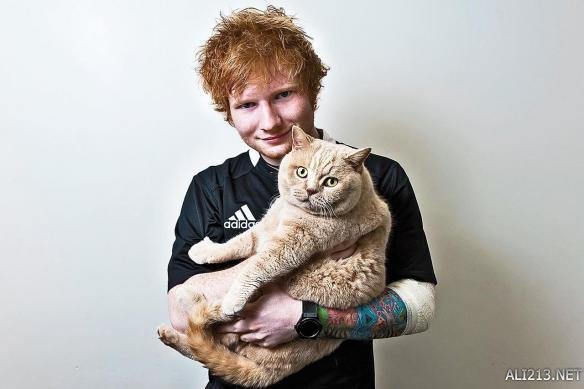 艾德·希兰和猫咪在一起
