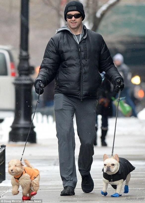 休·杰克曼经常被拍到在纽约街头遛狗,他有一只白色的法国斗牛犬和一只卡其色的小猎犬-贵宾混血。“狼叔”非常喜欢动物,经常在社交网站上分享爱宠的照片。