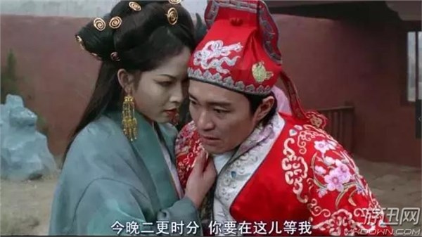 在原版那段凄凄美美的“一万年”台词之后,铁扇公主跟至尊宝约好了二更天相见,有话要说;紫霞也跟至尊宝约好,偷来月光宝盒,二更天在凉亭交给他。