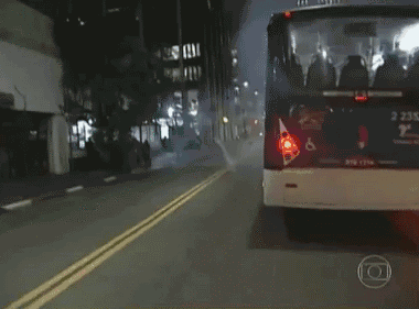 巴西警察,向暴动的市民发射催泪弹,可是警察叔叔忘记这是在巴西