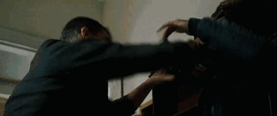《谍影重重》3里经典的浴室对打,对方抄起剃刀,而伯恩随手拿起毛巾,控制对方手臂,顺利打掉了刀。