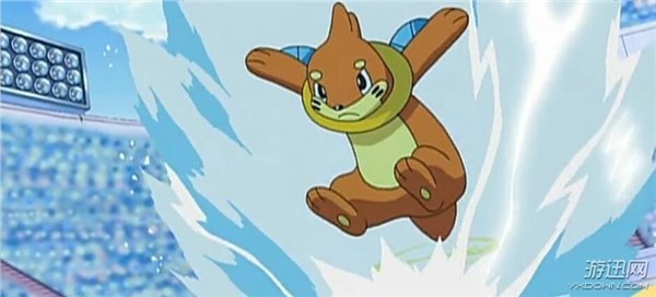 泳气鼬,海鼬神奇宝贝,身体主要颜色为橘色,脖子有着浮袋,当鼓起时可以浮在水面,游泳时会摆动两根尾巴前进。