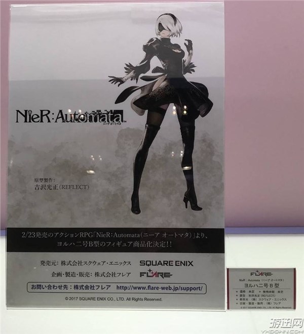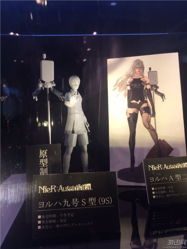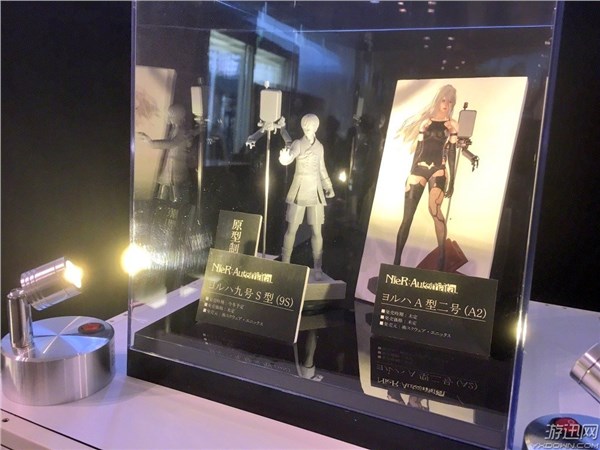 现场我们已经能见到9S的灰模,上面除了9S外,还有一个随行的机器人灰模。一旁的A2只有宣传画,不过我们能看到她也是随身附带一台机器人。而之前的2B手办宣传图中只有她一个人现身,没有武器或者机器人登场。