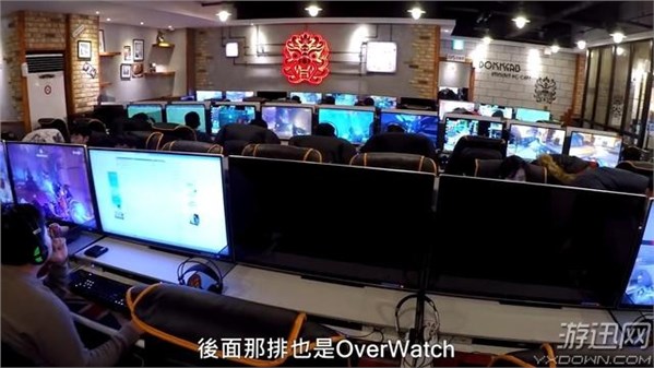 这名男子的朋友在玩《守望先锋》,放眼望去,其实玩《守望先锋》的人最多,而不是《英雄联盟》