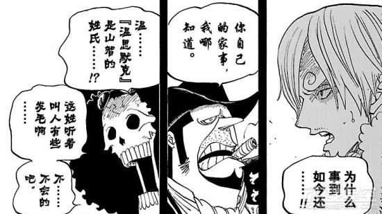 由于布鲁克已经存活了很长时间,因此许多不为人知的秘密他也能有所耳闻。比如在听到卡彭·贝基向山治曝光“文斯莫克”这个姓氏的时候,布鲁克第一时间就做出了反应,并认为这个姓氏“听着让人有些发毛”。