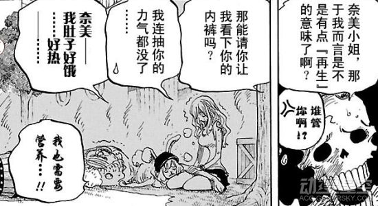 此外,在山治一行人到达佐乌岛之后,面对着四皇凯多手下旱灾杰克的喽啰,布鲁克淡定使用“丧魂剑”将路面冻结,将毛皮族少女成功救下。而当得知毛皮族遭遇到的灾难后,布鲁克更是全身心投入到战后救援行动之中,额头上渗满了汗水。(话说骨头是怎么出汗的……)