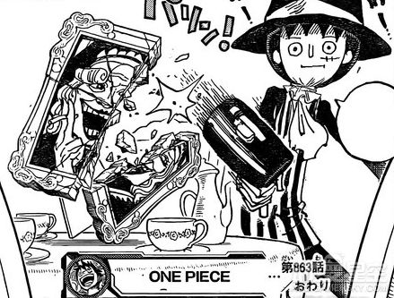 更令人意想不到的是,最新漫画第863话里,路飞等人将BIG MOM的茶会搅得一团糟,引发了多方势力之间的大混战。趁着这个空档,戴着路飞头套的布鲁克悄悄迂回到后方,一锤子敲碎了对大妈来说最为重要的照片,把本来已经脱离正常轨道的计划重新扳了回来——如果说路飞在这次破坏婚礼的行动中是主力输出,那么布鲁克则是全场最佳,MVP非他莫属……
