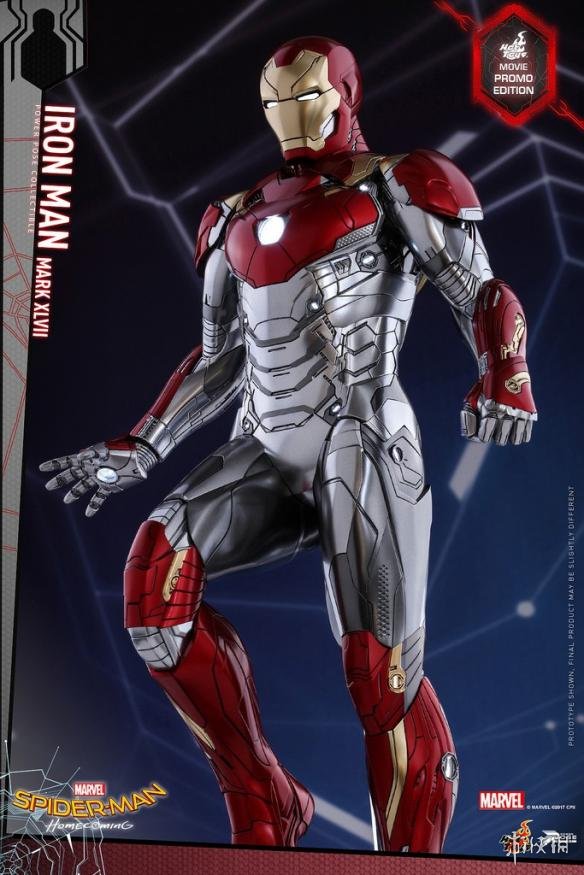 钢铁侠在《蜘蛛侠:英雄归来》中将身着MK 47新装甲登场,在预告中该装甲已经惊艳现身,一闪而过,近日HotToys宣布将推出这款新装甲MK 47的1:6比例半可动人偶,并且确定会在4月26日至5月1日举办的中国国际漫画节期间接受预定,限量300只。