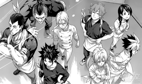 单行本24卷封面上,女木岛冬辅、美作昴、一色慧、塔克米·阿尔迪尼、久我照纪、薙切绘里奈和田所惠以背影的形象登场,充满了奔赴战场的气氛。与此同时,红发小子幸平创真回头望向后方,眼神和表情充满了自信——面对着实力强大的十杰成员,他们的未来将何去何方?一切精彩内容都将在本卷漫画中得以正式揭晓。