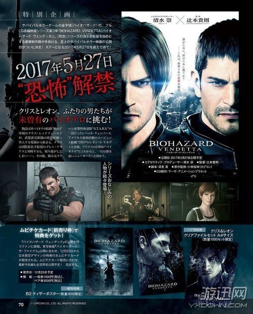 《生化危机:复仇》是《生化危机》系列的第三部CG电影,背景设定在纽约,并保留了里昂、克里斯和瑞贝卡三位主人公,电影将会在5月17日首映一晚,6月19日正式登陆北美及全球各大院线,国内目前暂无影片的档期消息。