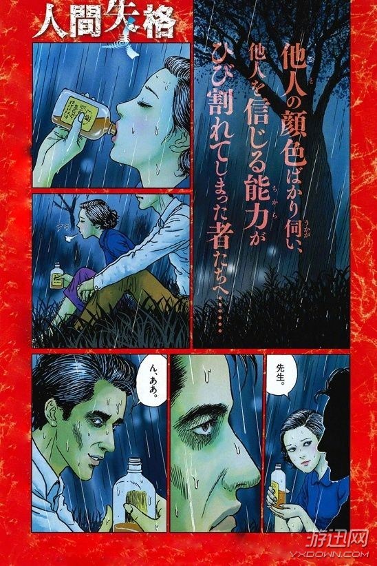 在《人间失格》漫画的开始,就是主人公自杀的情节,之后展开了回忆,就目前来说没有什么恐怖的情节,估计漫画也不会做过多的改编,主要就是展现原作的那份深深的绝望感。