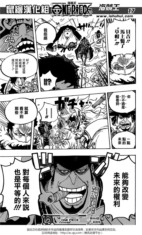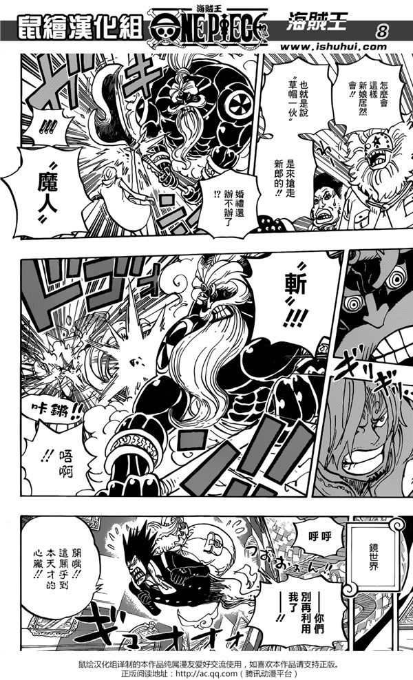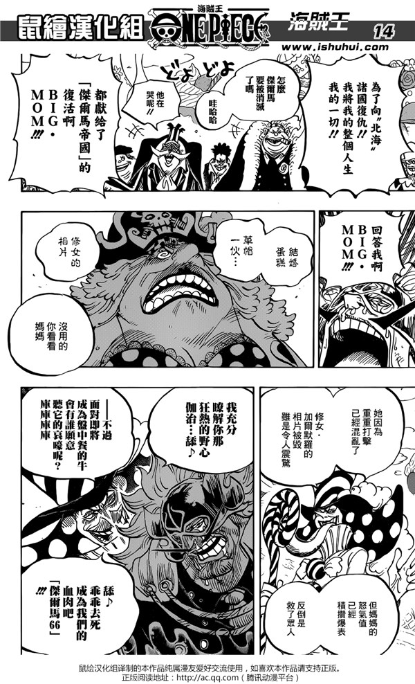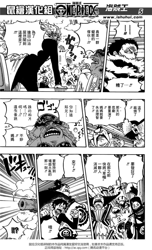 《海贼王》漫画第864话“文斯莫克家族全灭计划”已经更新,鼠绘也在第一时间为我们带来了汉化版本。这一话中,路飞、贝基他们终于和大妈的孩子们正面对战。最终伽治却因为自己的计划没能实现开始流泪崩溃,而大妈也在接连的打击下,直接开始发晕,也不知道“如何生气”了。
