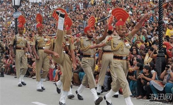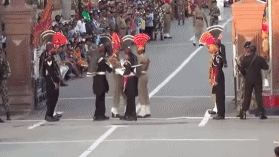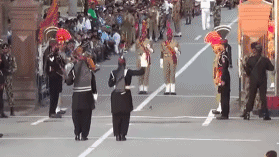 最后送给大家一个彩蛋。还记得印度和巴基斯坦换防仪式的互掐吗?比谁踢得高也是没谁了……