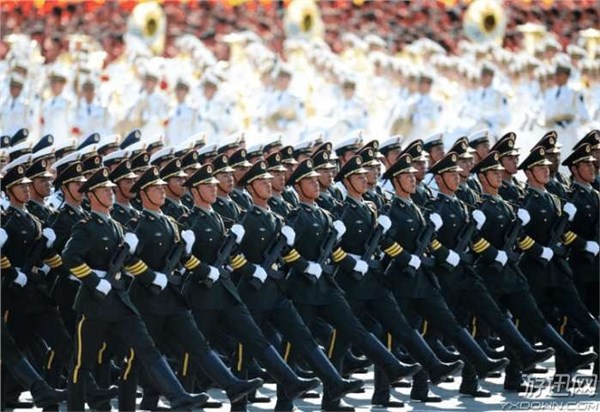 说到正步怎么能少得了我们帅气的解放军。解放军正步受苏式正步影响,但进行了很大改进,即向正前方踢出约75厘米,脚掌离地面25厘米,显得低调和整齐划一。真的很帅!