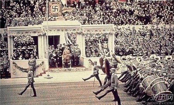 正步原本起源于中世纪的欧洲,后来由普鲁士(德国)传播到苏联并发扬光大,为世界各国所效仿。两德统一后,正步被废除。图为二战时期德军踢正步。