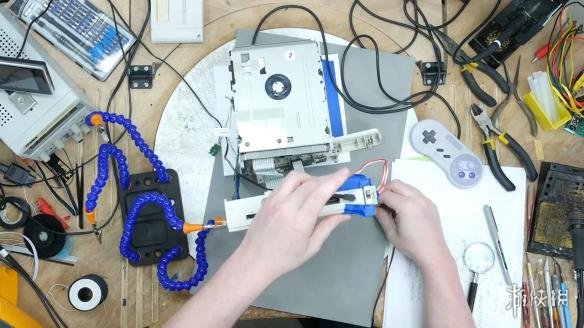而一位名为Ben Heck的国外游戏机Mod大神花费了千辛万苦终于搜罗到了这款原型机,并且耗费了不少心血累修复了这台“任天堂PlayStation”。在他刚入手时,机器只能通过上部的卡带槽读取超级任天堂游戏卡带,而下方的光驱则处于罢工状态。
