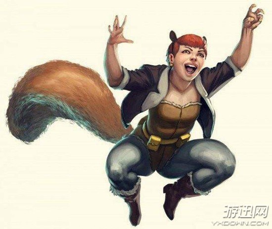人物:多林艾琳格林,有着半卷尾,大门牙和锋利的指爪,可以和松鼠们交流并指挥它们 ,毁灭博士、灭霸都曾是她的手下败将。