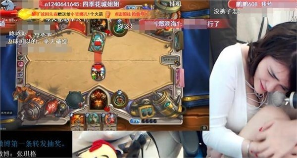 从直播截图中,我们可以看到这位曾经的LOL女主播,一边表情痛苦,一边玩炉石。