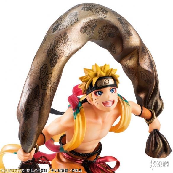骑风神的鸣人,鸣人手上拿的是金色的“风袋”,表情栩栩如生。