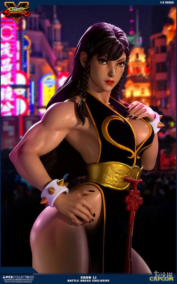 三种造型的春丽手办分别是春丽的经典造型(《街头霸王2》),售价925美元;春丽的Alpha皮肤,售价900美元;最后一种是在《街头霸王5》中穿着黑色旗袍(Battle dress)的春丽,同样售价900美元。