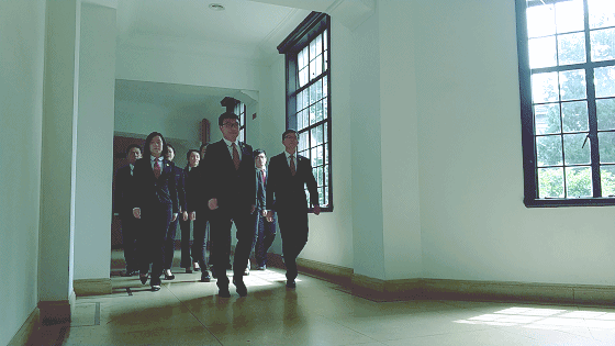 11名东大学子,穿着黑色“制服”,拍摄了一次“毕业的名义”风格毕业照。而经过精心一比一对照、如出一辙的背景,完美还原了剧照,也让观者恍若剧情再现。
