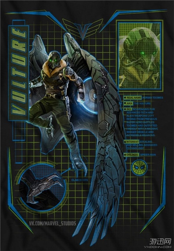 在新的宣传图片中,蜘蛛侠穿着腋网战衣在空中躲避着后方敌人的射击;还有反派秃鹫的装备详解,一身科技加持的秃鹫从头到尾都散发着危险的气息;再次出场的钢铁侠是蜘蛛侠成长过程中的人生导师,在《蜘蛛侠:归来》中二人的互动相信会是影片的一大亮点。