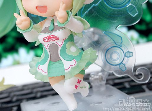 这款由厂商GSC推出的Racing Miku粘土手办将歌姬与机械风格有机结合,其中渐变色的双马尾、质感十足的小翅膀和飘扬的裙摆都让人感受到强烈的跃动感和张力,与初音的可爱动作堪称绝配。此外,手办还附赠了微笑表情、花束、迷你赛车和比赛奖杯等多种零件,搭配使用效果更佳。