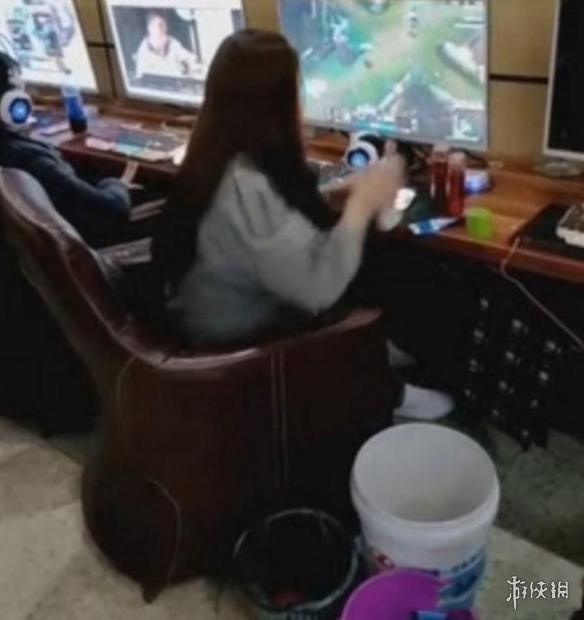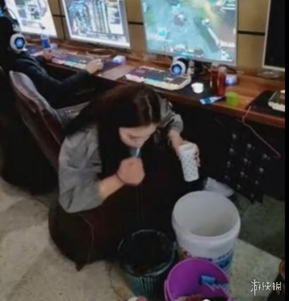 网吧看到一位LOL美女,一边玩游戏一边刷牙,只是为了节省时间,能多打几局游戏。