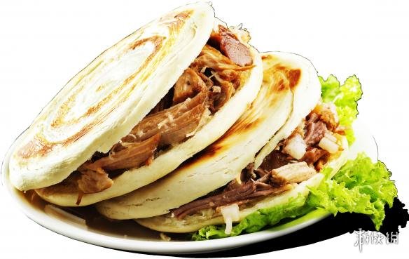 肉夹馍,实际是两种食物的绝妙组合:腊汁肉,白吉馍。肉夹馍合腊汁肉、白吉馍为一体,互为烘托,将各自滋味发挥到极致。馍酥肉香,肥而不腻,回味无穷。腊汁肉历史悠久,闻名中国,配上白吉馍,有着中式汉堡的美誉,扬名中外,深受人们喜爱。腊汁肉夹馍由三十多种调料精心配制而成,由于选料精细,火功到家,加上使用陈年老汤,因此所制的腊汁肉与众不同,具有色泽红润,气味芬芳,肉质软糯,糜而不烂,浓郁醇香的独特风味。
