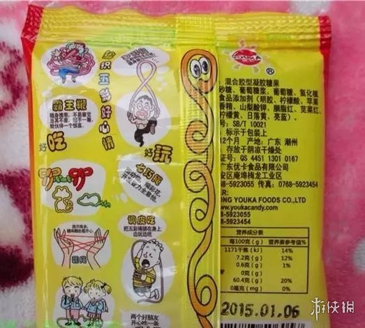还有能边玩边吃的五彩绳软糖,上面还给你举了几个例子,除了没和女同学共吃一条,其它我都试过了。