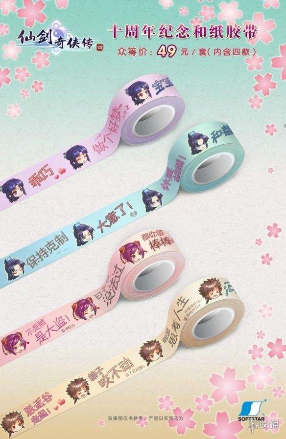 另外十周年纪念版胶带纸也将同步开启众筹,包邮价为49元一套,每套中含4款和纸胶带,四大主角表情包激萌登场。