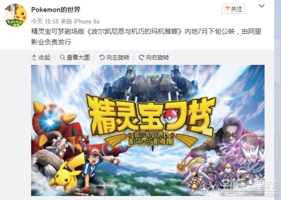 前几天阿里巴巴影业和《精灵宝可梦》联合推出嘉年华活动,当时很多网友就在猜测会不会有《精灵宝可梦》剧场版的引进。根据今天(5月26日)网上的消息,2016年的剧场版动画《精灵宝可梦:波尔凯尼恩与机巧的玛吉阿娜》将会在今年7月的7月份在国内上映,由阿里影业负责发行。目前官方还没有公开消息,但是就目前种种迹象来看,这个消息应该是比较靠谱的。