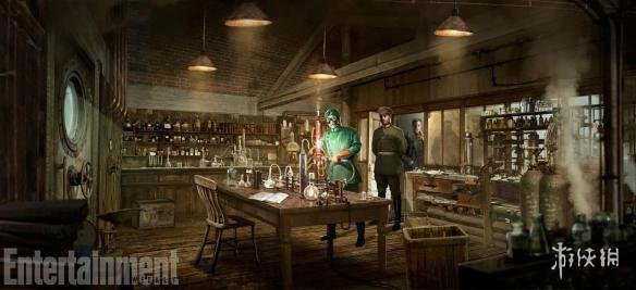 毒气实验室,单色调色板营造出地下、诡异的氛围。