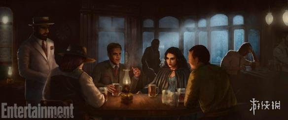 酒吧内的会议,艺术家在用色上比之前阴暗了很多。