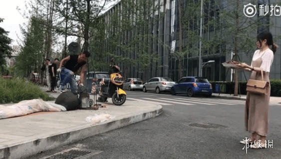 从截图中可以看到,当时女主播端着一盆小龙虾来到一位在爆“爆米花”的小哥哥面前,看样子应该是被他帅气的姿势迷倒了。