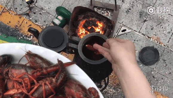 随着“嘭!”的一声巨响,感觉空气中都弥漫着小龙虾的味道,最后也是在这位小哥哥的帮助下,将爆好的小龙虾取出来。