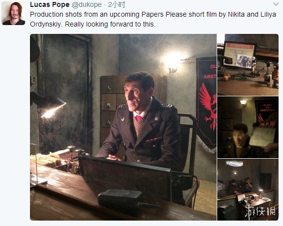 游戏制作人Lucas Pope今天在推特上发布推文,贴出了四张剧照,他说到:“由Nikita和Liliya Ordynskiy摄制的《请出示证件》电影短片剧照,真的很期待啊。”