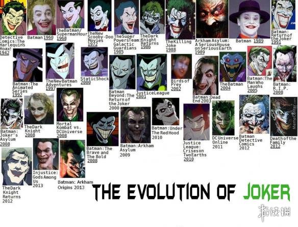 作为DC漫画的头号反派,小丑已经和蝙蝠侠已经相爱相杀了70余年。这70年间,小丑的形象一直在不断变化,细心的粉丝曾为其制作了一副图片,为大家呈现出小丑在漫画、影视及游戏中的形象变化。