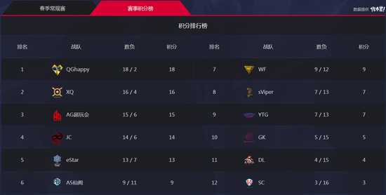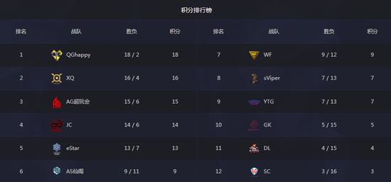 现在排行榜第一的依旧是被击败两次的不败神话QGhappy,不仅在20场的比赛里胜了十八场,更是拿到了KPL的15连胜新纪录,估计以后再也没有哪个战队可以打破了这个记录了。但在十一周的比赛里面QGhappy还不能放松警惕,毕竟16胜排名老二的XQ还努力的在缩小跟QG的差距,假如下一周QG连败两场,XQ两场连胜。那么XQ就以净胜分优势登上积分榜第一位。QGhappy下周的两场对手分别是eStar跟AS仙阁,个人认为1胜1负的数据可能性较大,毕竟是18胜的队伍,自身实力绝不会太差。而XQ的对手是sViper与JC,都是实力相当的战队,这输赢还真不好判断。如果想提前知道赛前胜负预告的话可以去斗鱼KPL最前线收看神兽杜雷的最新预测吧!