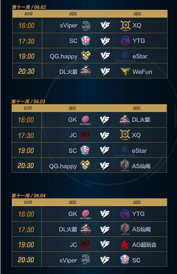 以下为常规赛第十一周赛程,KPL精彩比赛尽在斗鱼直播