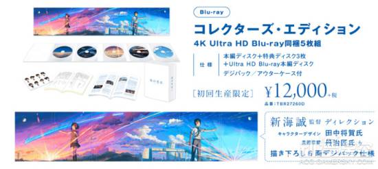 《你的名字》初回限定版BD盒六面展开图公开,该封面由新海诚与人设田中将贺,美术监督丹治匠三人共同绘制!限定版BD售价12000日元!另有7800日元(特制版)、4800日元(标准版BD)、3800日元(标准版DVD)。