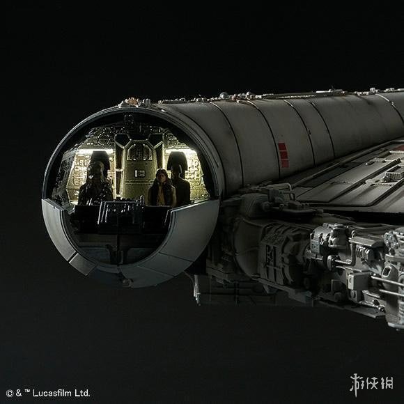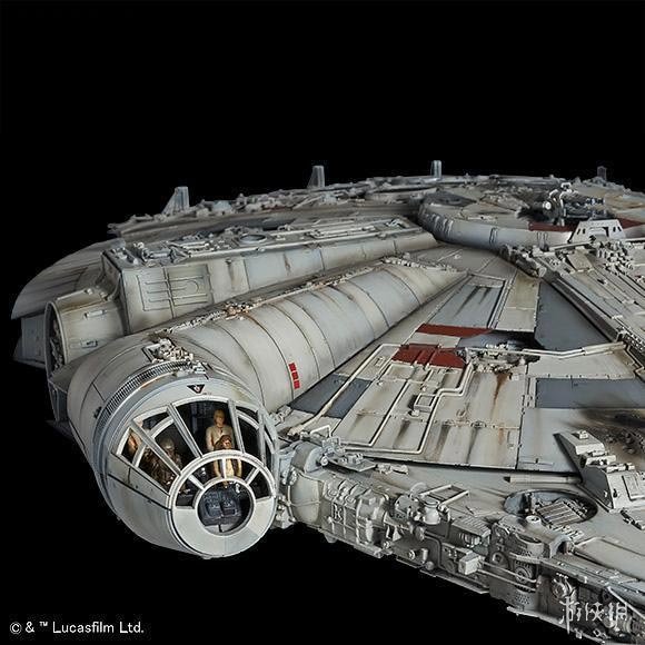 模型中有三处位置可以发LED光,驾驶舱该可以打开,其中可以放入电影中的角色:卢克·天行者、汉索罗、欧比·旺、莱娅公主、楚巴卡以及C-3PO。
