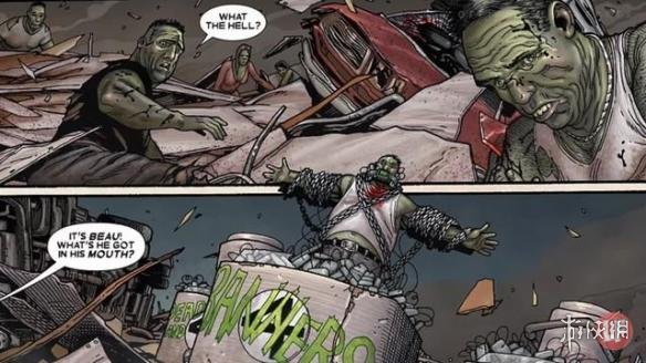 在漫威饱受诟病的《Ultimatum》(终极通牒)的第二期中,Swarm,可以说是来自叙利亚的胡蜂女,在溺水半死不活之时,被Blob像一块肉一样抓起啃食,心肺骨肠皆可见,还被称像鸡肉一样的味道。实在是惨不忍睹。