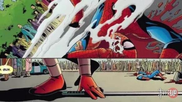 但小蜘蛛的死法估计是最令人印象深刻的,小蜘蛛被死侍用枪捅着下巴,也不相信死侍会杀他,然后,蜘蛛侠被死侍一枪崩了。半边头骨,弥散的枪眼,被背叛的基情。