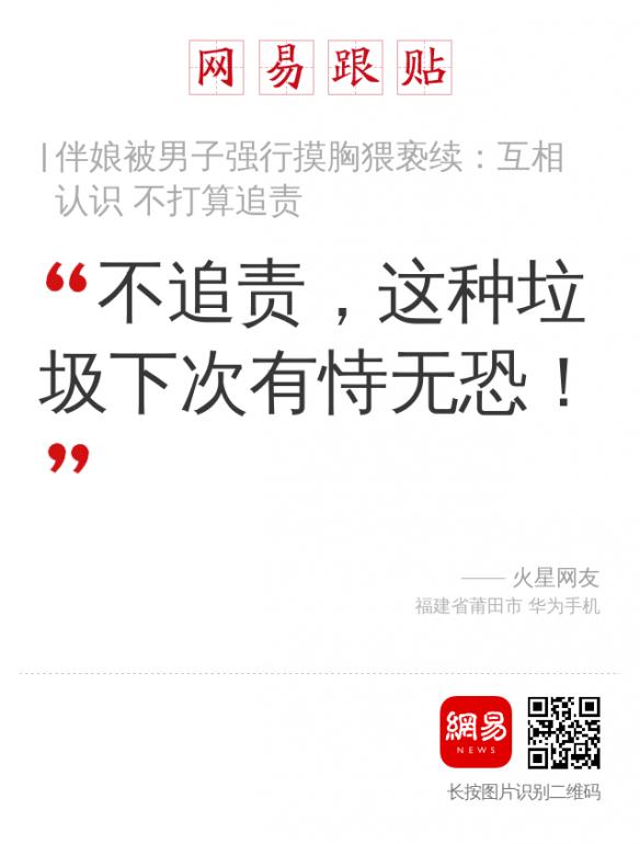 伴娘不打算追究,也许她受到了现实威胁,也许她承受不住来自熟人社会的隐性压力,也许对方道歉追悔真打动了她让她心生宽恕……不管因为什么,个人选择无可厚非,骂她毫无道理。